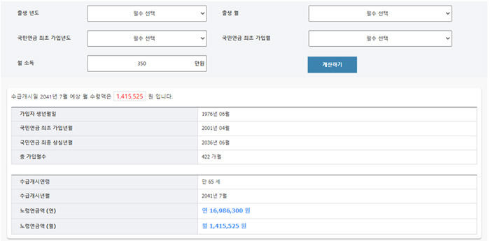 국민연금 예상 수령액 계산기 사용법